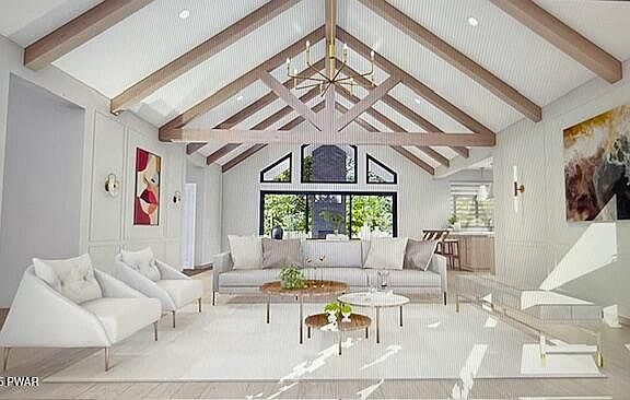 - Beamed Ceilings, Open Floorplan, Walk-In Closet(s), Vaulted Ceiling(s), Smart Thermostat, Recessed Lighting, Kitchen Island, Granite Counters, Cathedral Ceiling(s)