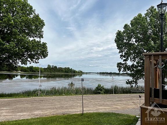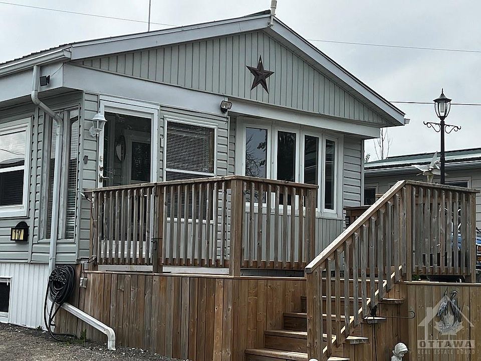Rideau River views every day! Enjoy your morning coffee watching the wildlife or the boats go by while sitting on your outside deck or in your favourite chair on the inside porch safe from any inclement weather. This mobile home has seen several improvements and is move-in ready. Two good-sized bedrooms with a third possible. 4pc bath with laundry and ample storage. Open bright spacious kitchen, living and dining area with a large pantry for extra storage. Oh and space for an in-home office. This is a great spot for summertime living if you're a snowbird or a year-round lower-cost waterfront option. Monthly lease land fees are $359.22 and includes: lawn maintenance, snow removal, water /sewer and taxes. This home park has an excellent reputation for being well-run and amazing neighbours for all of those 4 O'clock happy hour visits along the water. Book your personal viewing now and be in by Canada Day!! 24 hrs irrevocable on all offers, please.