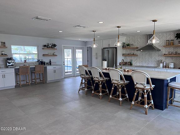 Incredible Ponce Inlet Island-style living in this 3-bedroom / 2-bath, 2-car garage home. Completely upgraded to meet all your needs and comfort. Brand newly resurfaced in-ground screened-in pool home, with removable baby barriers for seawall and pool. New vinyl front gates, pool light, pool pump, pool filter, pool heater, and skimmer. Located on deep-water canal and just a few miles to the Inlet and walking distance to the no-drive beach. New pavers around entire pool and entertainment area. Full enclosure re-screened with 20x20 no-see-um mesh. New outdoor sink, grinder pump, and sewer tie-in with above ground propane tank (for future outdoor KITCHEN). New AC with UV STERILIZER and all new duct work for ENTIRE HOME! New electric panel and 50amp generator hookup with transfer switch. Roof was done 12/2022 and new 30"x30" porcelain tile throughout entire home. Master bedroom has custom designed walk-in closet. New vanities and updated second bathroom with marble tile in shower. Boat house can accommodate 34' boat with 16,000 pound remote control boat-lift. Also has floating dock to accommodate PWC, kayaks, or even a second boat. Seawall and Boat House only approx. 10 years. Entire home has been upgraded. Home has split floor plan, and incredible open space. From the moment you walk through the front door you will appreciate the new modern upscale appliances; refrigerator, induction cooktop, built-in oven and microwave/convection oven, 2-stage dishwasher, wine cooler, huge 4'x10' quartz countertop island for entertaining guests. Relax even more with zero maintenance landscape all around house, and plenty of parking for family and friends. Not to mention an independent detached air-conditioned bonus room in the rear of the house that can double as an office or for a gamer. The garage is fully restored with epoxy flooring and adjustable garage shelving. Room to park RV and trailers tucked away on each side of the house. Boat to disappearing island, Tata island or many local restaurants. TOO MANY EXTRAS TO LIST. LOOKS GREAT ON PICTURES BUT SHOWS EVEN BETTER IN PERSON... ALSO IMPORTANT: This house has never been flooded...It has always remained high and dry throughout all the storms. All information are deemed to be accurate but need to be verified. (All measurements and dimensions are approximate).