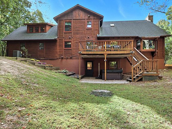 Welcome to the log home of your DREAMS! So charming and nestled on over an acre in a lovely low-traffic neighborhood with private setting, this incredible property offers just over 3,000 finished square feet with 3+ bedrooms and 3.5 bathrooms. From the moment you pull up the long drive, you'll be impressed by the home's stately presence, mature trees and gorgeous hilltop setting. The perfect front porch sittin' awaits. Inside, you'll immediately notice the meticulous care and countless luxury improvements and finishings the sellers have poured into this home. No room left unturned. The main living room features soaring ceilings and a brand new gas stove, creating a warm and welcoming atmosphere. From high-quality brand new Anderson windows throughout entire home allowing the right amount of natural light to flow through showcasing all the stunning wood features. WOW that kitchen!-offering brand new soapstone countertops with attractive bold design and stainless steel appliances. There is lovely wood flooring and the new carpeting with some modern painted walls allow a subtle transition and compliment the home well. Every room showcases thoughtful upgrades and beautiful craftsmanship, blending rustic charm with modern style. The expansive main-level primary suite offers a retreat of its own with an ensuite tile bathroom and plentiful windows. Upstairs, enjoy additional bedrooms, full tile bath, office or a 4th bedroom, and a spacious loft perfect for reading and taking in the home's rich wood details. The walkout lower level provides a whole new dimension of living with its own kitchen, full bath, and additional living spaceperfect for entertaining, guests, or multigenerational living. Outside, you'll find your peaceful oasis awaits as you are surrounded by nature and brand new black fencing but don't be fooled your property goes past the fenced area. More updates include new on-demand hot water heater, gutter guards, and even the front door is new. This is more than a home, it's an opportunity to own a one-of-a-kind log retreat with incredible value in every corner. Don't miss your chance to make this dream property yours! They are not nearly asking enough to cover the amount of high end finishes, truly a very lucky buyer's gain!