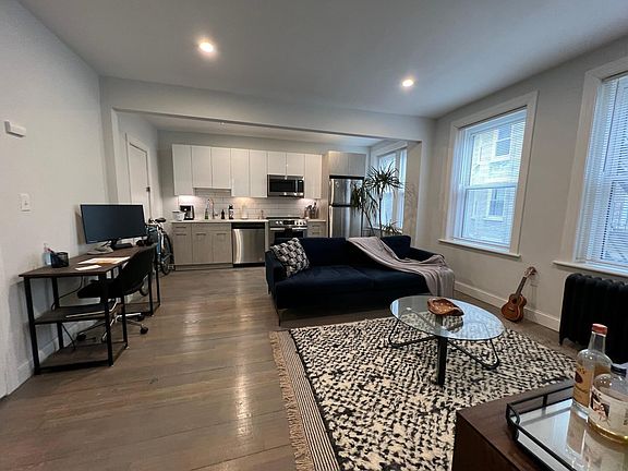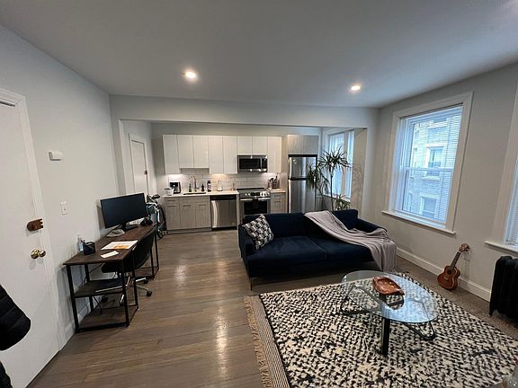 Fantastic second-floor apartment in Fenway for MARCH 1st. Wonderful open concept with brand new kitchen on one wall of large open space! The kitchen has white quartz counters and stainless appliances. Washer and dryer in unit. New bathroom with glass walk-in shower and heated flooring. Heat and hot water included. The apartment is under construction and being completed right now. These are photos of an identical unit one floor up. I have a video of the actual unit in progress. Please ask! Conveniently located near Landmark Square, just minutes from Fenway Park and public transportation. A one-month broker fee applies. No security deposit. Email/text Dan at East Coast Realty today for more information and a showing! Thank you! One-year lease starting 4/1/23. Heat and hot water included. No security deposit.