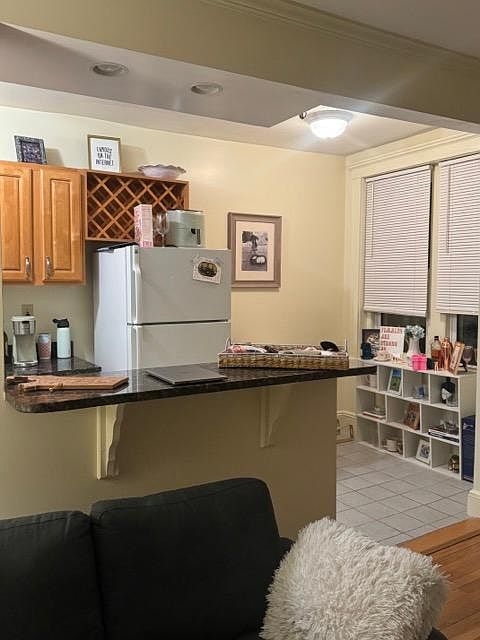 Spacious unit with 2 closets and kitchen separated by breakfast bar/island