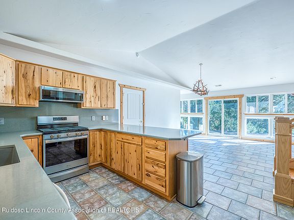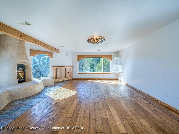 Exquisite custom craftsmanship with stunning Sierra Blanca views. This beautifully designed mt. home, showcases exceptional detail inside and out. Massive rock retaining walls line the newly sealed driveway, leading to a warm & inviting interior, highlighted by sculpted walls, ceilings & a solid oak staircase. The spacious LR features a gas kiva FP, built in oak storage & large picture window framing views of Sierra Blanca peak. The kitchen offers quartz countertops with a full quartz backsplash, while the primary suite includes built in solid oak dressers for elegant storage. Upstairs guest rooms feature custom oak vanities & cedar chests. Modern upgrades include a reverse osmosis system, water softener & septic system. Refined finishes, timeless craftsmanship & mountain serenity.
