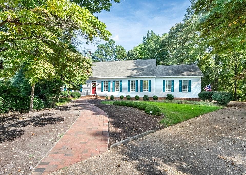Open the door to a bright and airy foyer accented with custom built-in bookshelves. This Kingsmill home showcases built-ins in the living room, den, and primary bedroom for both style and storage. The updated chef-style open kitchen offers expansive counter space, perfect for entertaining. The main-level primary suite features an updated en-suite bath with heated floors, while the upstairs bedroom enjoys its own updated private en-suite. Cedar closet and massive walk-in attic space, three fireplaces. Set on over a half-acre at the end of a quiet cul-de-sac in the gated Kingsmill community, this home blends updates, light, and resort-style amenities. Schedule a showing today!