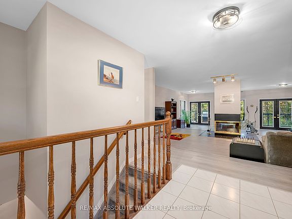 Mature treesExceptional privacyStunning four-sided glass fireplaceWrap-around composite deckWelcoming front gardenWooded areas