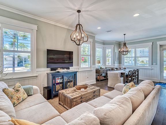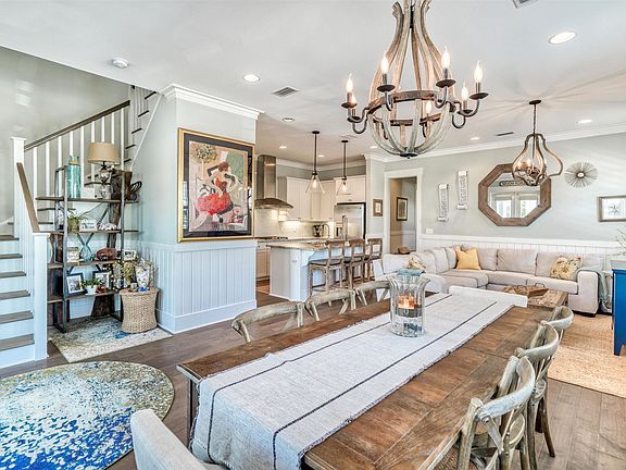 Classic coastal charm defines this cottage nestled within the coveted NatureWalk at Seagrove community! A welcoming front porch leads to double doors that open to a spacious living & dining area with wood floors, shiplap walls, ample natural light, & designer fixtures. The gourmet kitchen features custom white cabinetry, stainless steel appliances, granite countertops including a large center island & a sleek subway tile backsplash. The first level guest bedroom has tray ceilings & an ensuite bathroom. Upstairs, find the spacious master suite with an ensuite bathroom that includes a soaking tub, separate shower and double vanity. Two guest bedrooms with a shared bathroom & second living space complete the second floor. This home includes a one car garage & an outdoor shower for easy