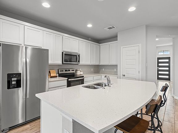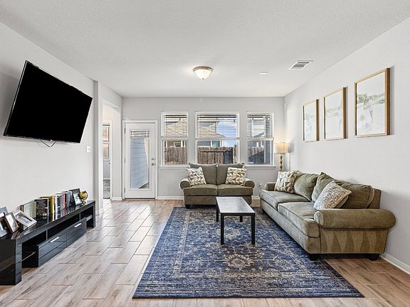 Nestled in the Sonterra neighborhood, this nearly new 3-bedroom, 2-bathroom home is a perfect blend of comfort and modern style. Built in 2020, the home features an open-concept floor plan with 1, 592 square feet of living space, offering an abundance of natural light and room for your family to grow. The spacious kitchen is a chef’s dream, showcasing generous counter space and modern appliances, perfect for preparing family meals or entertaining guests. The wood-style tile flooring throughout the main living areas complements the cozy carpeted bedrooms, providing both beauty and practicality. Just steps away from schools, scenic walking trails, and convenient access to I-35, this home offers the best of suburban living. Whether you're enjoying a day at the amenity center, grabbing a bite at nearby restaurants, or commuting to work, everything you need is within easy reach. With a price that offers great value for this newer construction, this home is ideal for you if you looking to put down roots in a thriving community