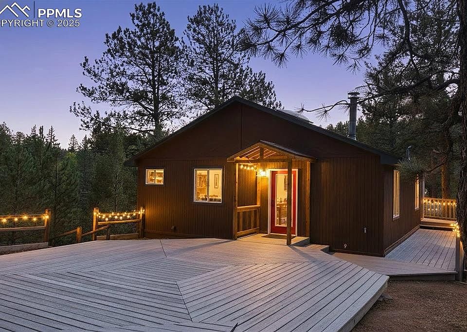 Welcome to a truly unique mountain retreat where rustic charm meets modern luxury. This stunning 2,400-square-foot home on 4.12 wooded acres has been meticulously remodeled from top to bottom. Step inside to find a brand-new custom kitchen with granite countertops, new bathrooms, and beautiful Australian cypress wood floors. The home is warmed by a state-of-the-art hydronic heating system and a cozy wood-burning stove with a custom hearth. The lower level offers a private living space with a new kitchenette and a separate entrance, making it perfect for rental income or a mother-in-law suite. Outside, the property is a dream for hobbyists and adventurers alike. You'll find a two-door garage with an expansive workshop, a 3-horse loafing shed with a corral, and two massive leveled areas at the top of the property with beautiful views, ready for RVs or tiny homes. The property also includes a unique refrigerated wild game processing shed, a fenced-in area for animals, and a total of six outbuildings for all your needs. Located just minutes from Pike National Forest, this is a rare opportunity to own a fully-developed property with endless recreational possibilities.