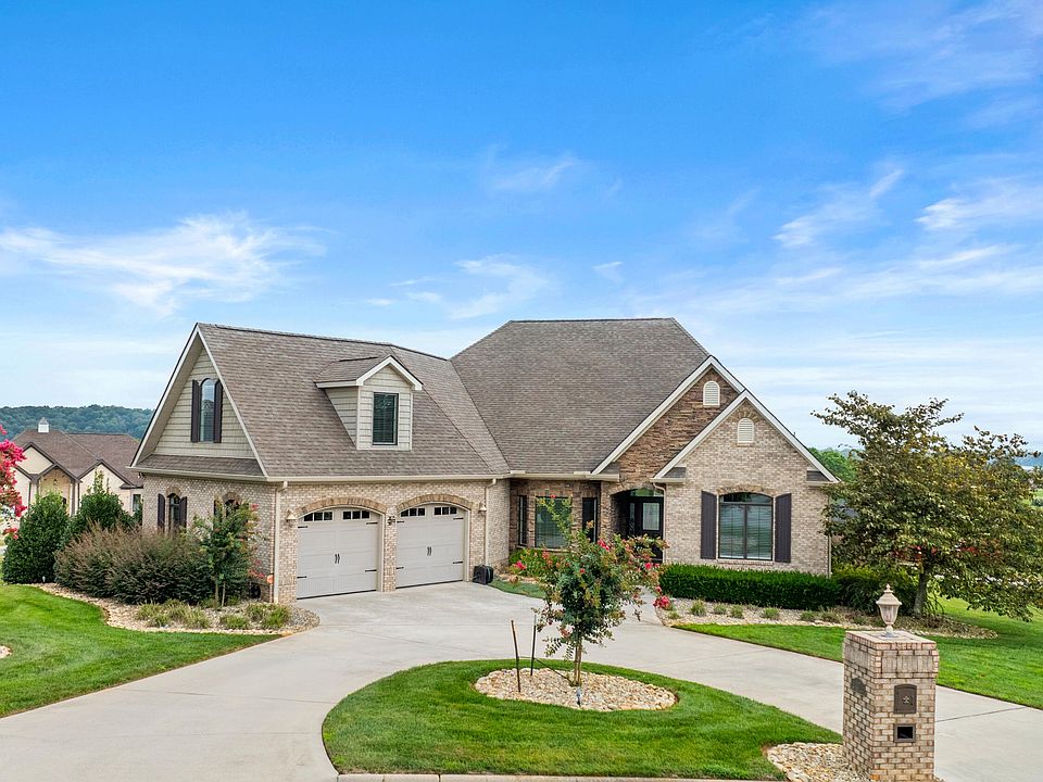 With a stately brick and stone exterior, this home radiates curb appeal. The oversized 878 sq. ft. two-and-a-half-car garage is a standout, featuring epoxy flooring, a built-in workshop with cabinets, ample storage, and a dedicated electrical circuit panel for a remote generator. The professionally landscaped yard boasts river stone beds, low-voltage uplighting, and a fully remote-controlled irrigation system.