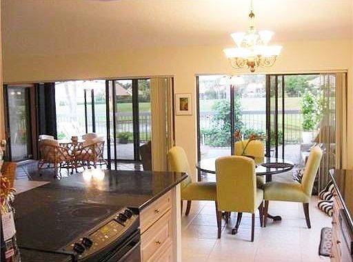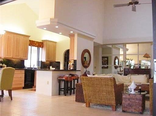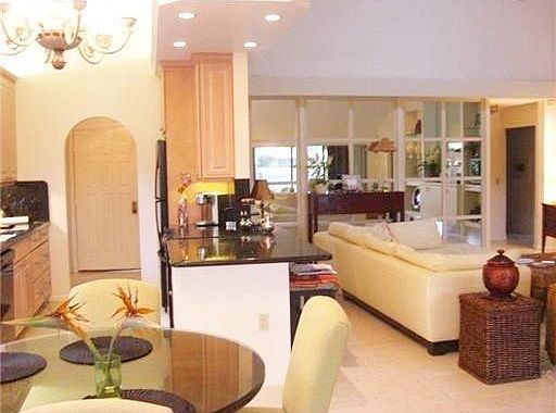 House features a large master bedroom w/ big walk-in closet and full master bath. Second bedroom, full second bath, and third bedroom with unique cool elevated loft that can be used as a small office, meditation space, or even extra storage. Attached two-car garage and private driveway. Open floorplan in living room/ kitchen. Kitchen features granite counters. Elegant lofted ceilings throughout. Bonus enclosed extended ''Florida room'' off back of the house with beautiful lake view. Large glass doors also enhance the view. Our spacious private stone patio off the bonus room is surrounded by lush foliage and a stunning view of a peaceful lake with fountain. Offered Partially Furnished or Unfurnished. One dog under 25 pounds will be considered at owners discretion .