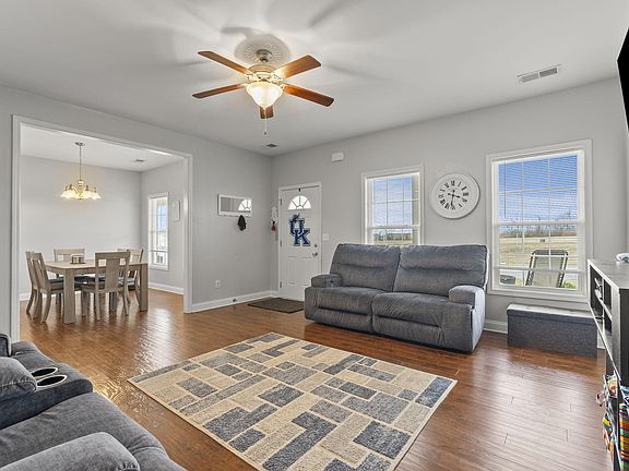 Welcome to this beautifully designed home in the heart of Versailles. If you've been looking for a 4 bedroom house, look no further! This home features 4 spacious bedrooms and 2.5 bathrooms, including a first floor primary en-suite. The primary en-suite features new LVP flooring, a double vanity, and a large tile walk-in shower. Additionally you'll find a large living room, a formal dining room, kitchen with granite counter tops and stainless steel appliances, first floor laundry/mud room, a covered patio, and a large two-car attached garage. New furnace installed in October 2024. Located conveniently near Woodford County Middle and the new Woodford County High School. Schedule your private tour today!