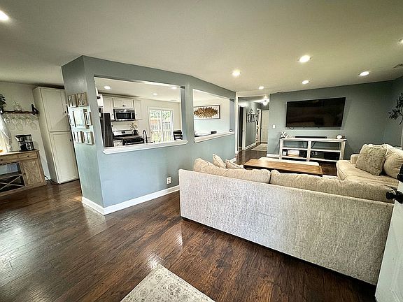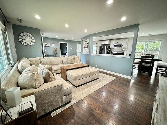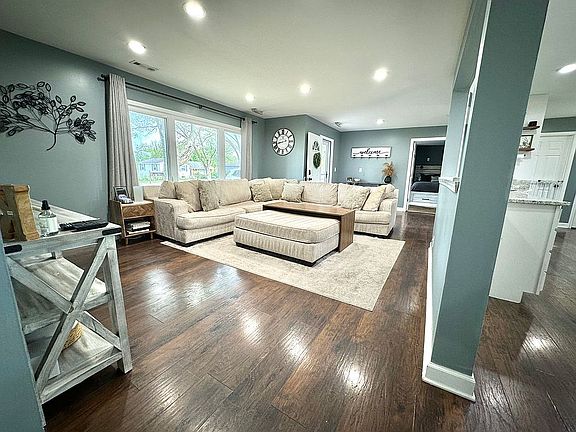 This beautifully rehabbed ranch has been meticulously updated over the past several years, blending modern comfort with an inviting atmosphere. The open floor plan features dark engineered flooring throughout the main living areas, creating a sleek and cohesive look.