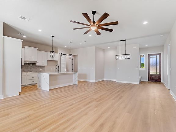**$10K Flex Cash for a limited time** Welcome to The Agave—a thoughtfully designed 1,953 sq ft home that offers timeless Hill Country charm with modern comfort and premium details. This 4-bedroom, 2.5-bathroom layout features an open-concept living area with soaring ceilings and natural light that pours into the heart of the home. A striking stone fireplace anchors the living room, while the kitchen takes center stage with waterfall quartz countertops, designer lighting, and a spacious center island perfect for entertaining or everyday meals. The private owner’s retreat is tucked at the rear of the home and includes a spa-inspired ensuite with a walk-in shower, drop-in soaking tub, dual vanities, and a large walk-in closet. On the opposite wing, three additional bedrooms share a full bath, with a powder room conveniently located off the main living area. A covered front porch welcomes guests, and a large covered patio out back is ideal for Hill Country evenings under the stars. Additional features include a mudroom with built-in bench, oversized pantry, and a generous epoxied 3-car garage for vehicles, gear, or workspace flexibility. Located in Ridgepoint Estates, Bertram’s premier new home community, this home offers space to grow with peaceful surroundings—just minutes from Liberty Hill, Burnet, and less than an hour from Austin.