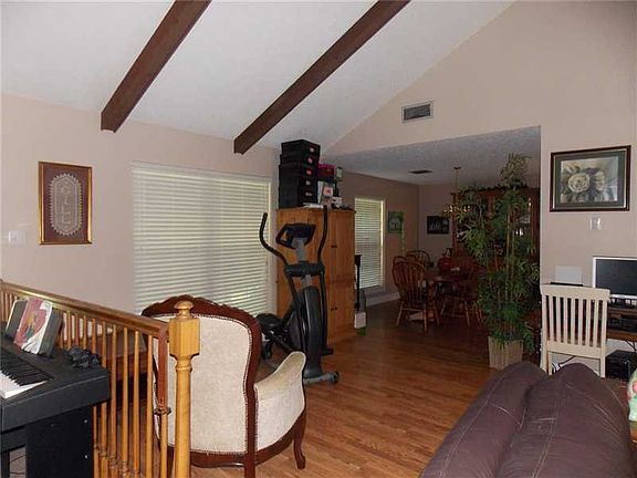 "LIVE LIFE UNDER THE OAKS" Home is situated on well manicured acre lot w/plenty of aged oaks, lush landscaping & flowering shrubs. Den has exposed beam cathedral ceil, radiant woodburning frpl, bright & cheery kitchen, brkfst area plus formal dining area. Perfect home for entertaining. Lovely laminate wood flooring thru out; tile in kitchen, laundry & brkfst area. Plenty of storage space. Located in Premier school district. Free Warranty.