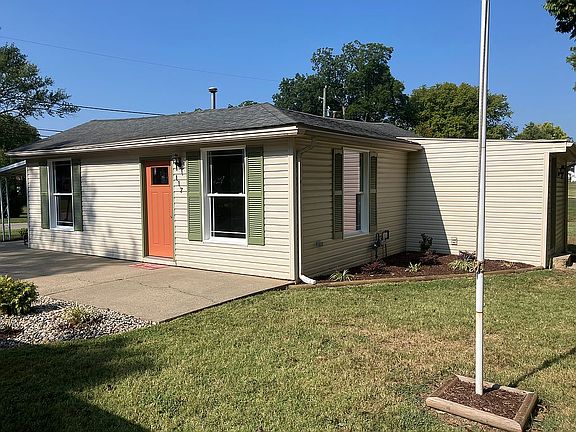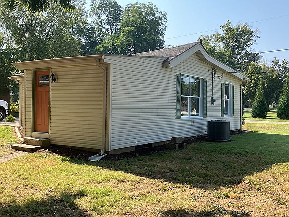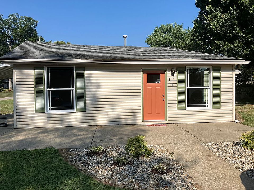 Charming 2 bedroom 1 bath with covered porch off of bedroom newly remodeled home. New roof on home & garage, new double pane windows, exterior & interior doors, new heat & air, cabinets, countertops, flooring, walkin shower & hotwater heater. Gas heat, all else electric. One block off of Ohio river. Corner lot 100x100. Garage 616 square ft. Rooms approx 13 x13 LR, 2 BR & Kitchen. Like new inside.