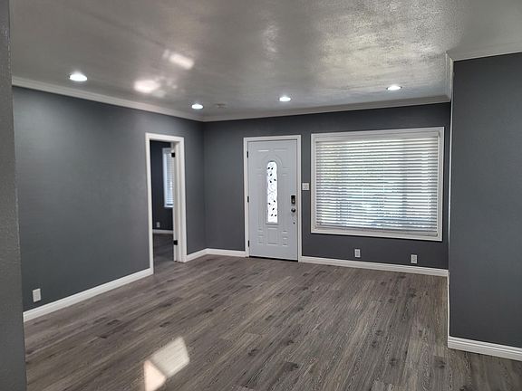 Beautifully remodeled home 1,043 sq ft sits on a 6,535 sq.ft lot!! 3 Bedrooms 1 Bathroom. Open floor plan & spacious living room, freshly painted, recess lighting, glistening new floors which leads to Kitchen which features custom granite counter tops, large island, New cabinetry with plenty of storage space, stainless steel appliances and formal dining room. New heating installed. Laundry room with washer and dryer. Private huge back yard. Long driveway and parking available at rear of home. Here is your opportunity!! Don't miss out