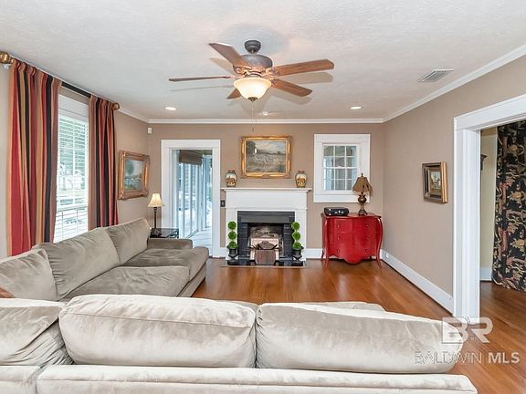 Open Saturday, May 31, 12-2. Attractive 3BR 2 Bath Historic Midtown Cottage with white Picket fence. Located between Dauphin St. and Airport Blvd. Wonderful kitchen has split brick floors, granite counters, wine cooler and stainless appliances. Hardwood floors & 9' ceilings throughout. 20'x15' living room with gas log fireplace opens to a 14'x10' sun room. Fantastic 20'x12' primary bedroom with designer walk in closet and deluxe primary bathroom featuring a walk in tiled shower, granite double vanity and heated tile floors! French Doors open to a Private back deck and patio with gas grill and workshop. 2nd bedroom connects with primary bedroom makes for a nice nursery or private office. All bedrooms have designer closets. And don't forget the tankless Hot Water Heater. Front and side yard are well landscaped and fenced with multiple fruit trees including tangerine, lime, grapefruit and satsuma. Call your agent today. Seller is offering a 1 YR home warranty. Buyer to verify all information during due diligence.