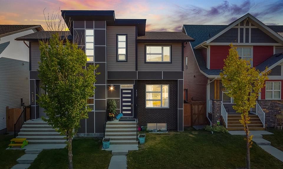 Welcome to 117 Howse Lane NE in the family-friendly community of Livingston! This beautifully maintained semi-detached home offers over 1,560 sq ft of functional living space, designed with comfort and future potential in mind. The bright, open-concept main floor features a spacious living room with large front windows, a dining area perfect for family meals, and a modern kitchen with quartz countertops, stainless steel appliances, and ample cabinetry. A convenient half bath completes the main level. Upstairs, you’ll find the primary suite with a walk-in closet and ensuite, along with two additional bedrooms and a full family bathroom—ideal for a growing family. One of this home’s standout features is the separate side entrance and basement suite rough-in, providing incredible flexibility for future development or rental income. (City approval needed for development) Step outside to enjoy a large backyard, offering plenty of space for kids, pets, or creating your dream outdoor living area.