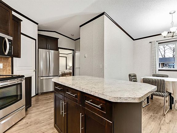 Escape to peaceful country living with this well-maintained 3 bedroom, 2 bathroom mobile home situated on a generous 0.75-acre lot. With an open-concept layout and excellent flow throughout, this home offers both comfort and functionality.The Home Features - Bright, open main living area with seamless flow. The kitchen features a great layout for cooking and entertaining including an island plus a large walk in pantry for extra storage. New appliances (2025) include- washer, dryer, dishwasher & microwave hood fan. Mobility-friendly design with wide doors and an accessible shower. Spacious bedrooms and well-appointed bathrooms. The Oversized Dream Garage comes heated, insulated and finished with 220 power and set up for a welder, it makes a great workshop with plenty of room for vehicles and all the toys. Plus a shed for more storage. The Outdoor Space is charming with 0.75 acres of quiet country. If you're looking for peaceful rural living with modern comforts and great value, this Mossleigh property is a must-see!