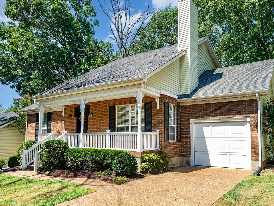 Beautiful move-in ready home with like new stainless steel appliances in Goodlettsville! Located conveniently near interstates and shopping, this 3-bedroom 2.5 bath home features a main level master bedroom, soaring 19ft vaulted ceilings and a fireplace in the living room, updated master bath and all appliances remain with the home! Other notable features include the large covered front porch, clean kitchen with spacious cabinets and ample prep space, oversized attached 1-car garage with shelving and more! The back yard is lined with mature trees providing shade in the summertime, and the deck is large enough for an outdoor dining space! The Windsor Green community is special, with well maintained homes and abundant green spaces! See photo roll for a detailed floor plan with measurements. Ask about a 1-year home warranty with acceptable offer and 1% towards lower rate with preferred lender!