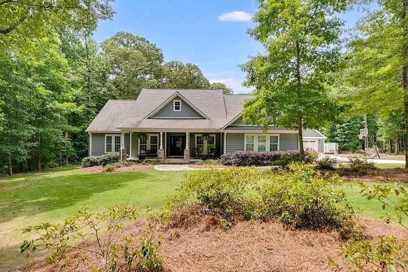 Welcome to the sought-after neighborhood of Southbend, which has larger lots (this one has a 4-acre lot) and NO HOA. It is located in Carrollton with the Roopville Elementary School district. This craftsman-style exterior and well-appointed interior will surely be the home you have been looking for! It has a beautiful rocking chair front porch overlooking the well-manicured lawn. You'll notice real hardwood floors and 10? ceilings throughout the main space as you enter the home. This home has a separate dining room that is perfect for entertaining. An office with a closet so it can turn into a 5th bedroom if needed. There are 3 bedrooms on the main level and is the desired split bedroom plan. The oversized master bedroom has an en suite of your dreams. With a gorgeous large tiled shower, a separate soaking tub, double sinks, granite countertops, and a large walk-in closet with a closet system. The main space is an open floorplan concept featuring a cozy living room with many windows overlooking the private backyard and a stunning rock gas log fireplace. The kitchen is a chef's delight and has beautiful granite countertops, a tiled backsplash, ample cabinet space, an oversized bar with extra seating, stainless steel appliances, and a gas stove top. The laundry room is off of the attached 2-car garage and there's ANOTHER detached 2-car garage perfect for a workshop, storage, or holding your extra cars. If you're looking for flex space or extra bedrooms, this one has them. With extra finished rooms above both garages, it could potentially be a six-bedroom home if you need it to be. Above the detached garage is a large space with another full bathroom. Outside, you'll find a large back deck with a rock outdoor kitchen, tongue and groove ceiling, and steps leading you to a level and private backyard. Also, you'll see the covered patio in the backyard, complete with another stunning rock fireplace. Also outside is an adorable play house, chicken coop, and raised beds for gardening. This perfect home is only a few miles from Walmart, has high-speed internet, and is on a quiet street. Schedule your showing today!