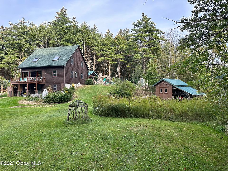 Welcome to your dream home that offers comfort, functionality, and natural beauty nestled on 2.64 acres. The heart of this 3 bedroom 2 bath home lies in its open floor plan with natural light that seamlessly connects the kitchen, dining, and living areas together. The kitchen offers practical functionality in an efficient layout with a patio door that opens to wraparound deck with sweeping views of the expansive yard, fruit trees, greenery and wildlife. The full basement doubles as a multi-purpose area with additional guest quarters and plenty of storage. Covered outdoor space, adorned with natural rock fireplace and fire pit offers a splendid setting to gather around any time of year. New roof and house generator. Located 2 miles from the town of Hague beach and boat launch!