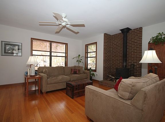 Extremely well cared for home in Webbwood, walking distance to Downtown Carrboro & the Bolin Creek Trails. Sought after one level home with hardwood floors throughout living areas & vinyl or tile in kitchen and baths. Large family room w/wood stove, upgraded kitchen with stainless steel appliances, updated baths, new roof/gutters/downspouts, new paint, trex decking & much more. Fantastic 0.46 acre landscaped lot with circular drive, a meditation path and bench, solar hot water & a workshop w/electricity. Special Features Exterior Painted with opaque stain (damaged siding replaced) in 2014 New roof with 35-year shingle (2010) New gutters and downspouts Windows replaced as needed throughout house Added bathroom privacy windows Added garden window in dining room Long window added in back bedroom Solar tube added in living room Solar hot water heater, refurbished in 2007. Cleaned annually. Heat-pump - Trane High Efficiency System (2007) New flexible ducting to all registers. New front door and storm door (2014) New side French doors to deck (2014) Trex decking and railings on rear deck Interior Painted throughout in 2015 (back bedroom done in 2009) Kitchen updated with stainless steel appliances, new countertops, light fixtures and sink Hardwood floors refinished (2012) Ceiling fans added in dining room and living room Thermostatically controlled attic fan added (2008) Master bathroom updated with new toilet, walk-in shower, and tile (2011) Second bath updated (2013) Appliances Dishwasher & Refrigerator (2011) Range with convection oven (2009) Landscaping Gravel driveway and stacked stone wall (2008) Meditation walk and bench (2011) Garden walls at end of driveway (2012/13) Plants, bushes & trees added (2006-2013) Other Features Workshop with electricity built to the standard of the main house. Attic partially floored for storage Near the Bolin Creek trails 1.5 miles to downtown Carrboro Average Monthly Utilities Duke Power - $104 Gas - N/A Water - $40.50