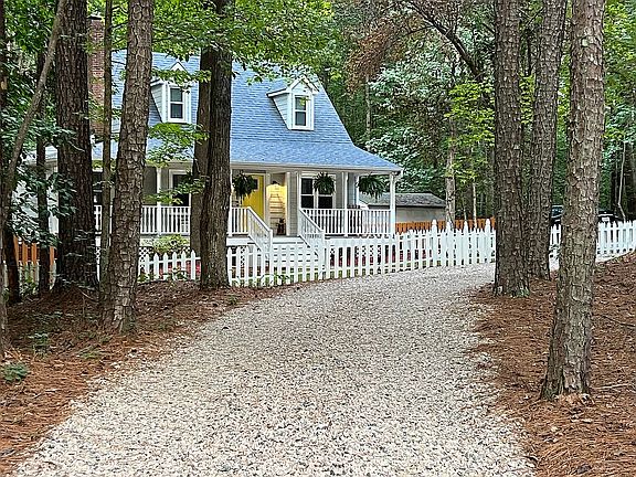 Wooded acresWood burning fireplaceRocking chair front porchGravel drivewayBack deckHeart pine floorsTiled bathrooms