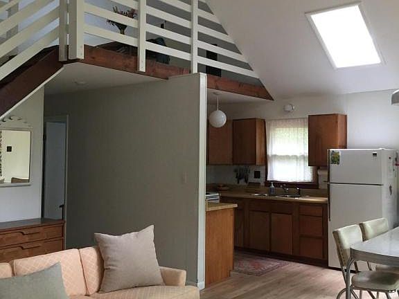 Sunny Chalet Lakeview Home with open floor plan on oversized corner lot facing Big Twin Lake. It is a relaxing getaway, perfectly situated with lots of glass to watch the sunset over the lake from the large deck. The house is well situated on a large wooded lot with circular driveway. Well maintained with wood fireplace for cozy nights. Big open loft upstairs for yoga, office, studio or bedroom. Skylights keep the entire place feeling sunny and very cheery! The home has two bedrooms with nice closets and one bath plus a large loft. Twin Lakes is a 400 acre natural private glacier fed lake with great fishing, sailing and kayaking. It is magnificent and very peaceful. It has the reputation of being on of the best in the area! Walk to a private sandy beach with docks and boat rack.