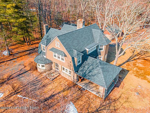 She's baaaackk...Stonecrop has returned to market at a new price. If you missed out before, this is your second chance at a timeless mountaintop estate on 10+ private acres with sweeping views of the Delaware Water Gap and Camelback. Built in 1906 with enduring stonework and craftsmanship, the 3,000± sq ft main house offers original built-ins, four fireplaces, front and rear stairs, and a large wood-beamed covered porch that frames the views. A detached 560± sq ft guest cottage with its own bath adds flexible space for guests, studio, or 'granny pod.' Significant updates include roofs and mechanicals, an upgraded boiler, electrical improvements, and more. Interiors are ready for your vision. Extra second-floor room is ideal for a future laundry/second bath; walk-up attic offers additional possibilities. Rare estate-size acreage delivers privacy with room to expand or explore subdivision (verify with township). Minutes to major routes and year-round attractions, yet a world away. Not a fixer—an exceptional canvas for your forever home, weekend retreat, or multi-generational living. Lots of seasonal photos available - gorgeous any time of year! Back on market due to Buyer's financing failing after a low appraisal. There are no comparable recent sales for a home this special and unique so the seller prefers a cash-strong buyer ready to accept as-is and invest in the vision. Schedule your tour today