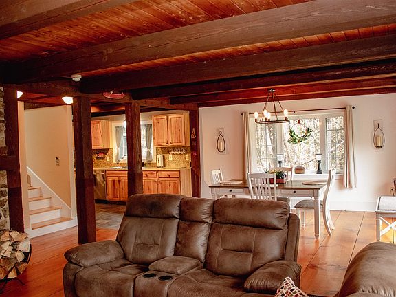 Here, nestled on 2.55 gently sloping acres resides this unique post and beam home with 560' on Harper Brook. Fruit trees and perennials outline the property with granite stepping stones leading to the attractive stone front and main entry. Upon entering you are welcomed by 18" wide, soft, pine floors, a fieldstone fire place and ample sunlight flowing in through garden windows. The pleasant dining area is open to the living room and kitchen which is accented with Hickory cabinets and S.S. appliances. Laundry, utiltity room and bathroom round out the lower level. The second floor is also bright and airy with 10' ceilings, maple flooring and more oversized windows. Ample closets, 3 bedrooms and a full bath complete this floor. On chilly days enjoy the warmth of the fireplace, while in warmer weather relax in the 3 season room, on the slate patio or in the tree swing while admiring the fruit trees and babbling brook. Remote and private yes, but for those who want more I93 North or South is just minutes away. As is Lake Waukewan, Winona, and Winnipesaukee. Minutes to Meredith Bay, boating, fishing, hiking, golf, restaurants, wineries, shopping, skiing make this a great Get-A-Way or primary home. Showings start 5/6/23, at the open house, 11am-2pm. and Sunday 5/7/23, 11:30am-2pm.