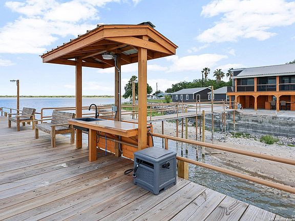 The owner of this pristine, one-of-a-kind waterfront home meticulously renovated it with careful attention to detail. Step into a lakeside retreat and relax on the exceptional property. The home features separate expansive living and dining areas. It sports a neutral color palette with bold accents that inspire a costal vibe, and a fully screened-in, covered upper deck that has breathtaking views, making this home perfect for fun and entertainment year-round. The primary bedroom boast grandeur and ample space with its large walk-in closet, a private bath overlooking the stunning 180-degree vista, and double French Doors. Enjoy the renovated private pier made of steel construction, a boat house with an electric lift and a generous 3-car garage. This fantastic property spans two lots, granting you your own slice of lakeside paradise. Live the dream in Point Loma! HOUSE IMPROVMENTS: 3,508 sq ft Five Bedroom / Four Baths Downstairs Living: New Interior Neutral Paint Color New Recessed Lighting with New Light Fixtures New Wood-like Vinyl Flooring and Carpet in Bedrooms Reverse Osmosis Drinking Water New Appliance with Smart Refrigerator, Included Colorful Accent Tiles, Backsplash Bronzed Hammered Double Sink Built-in Shelving with up Lighting and Plenty of Storage Built-in Breakfast Bar Large Living Area with Beautiful Built-in Shelving Rock Wood Burning Fireplace Huge Primary Suite with Double French Doors that Leads to an Amazing Waterfront View Fully Renovated Attached Primary Bath with Jetted Tub and Separate Shower, Double Vanity and His / Hers Closets Hall Bath with Gorgeous Silver Hammered Sink / Shower Two Additional Downstairs Bedrooms one with Attached Full Bath Covered Porch with Built-in Seating for Hours of Entertaining Fun!! Upstairs Living: Full Separate Living Quarters Full Kitchen with Stainless Steel Appliances, Included Two Large Additional Bedrooms Full Bath with Colorful Decorative Tile Backsplash Open Concept with Large Living and Dining Combined Dedicated Stairs to Upstairs Quarters with Metal Screen Door Covered Screen-in Porch with Amazing Waterfront Views. EXTERIOR IMPROVEMENTS: 0.66 Acres / 2 Lots Detached Three Car Garage with Electric Opener Right Next to the Subdivision Boat Entry Metal Roof New Faux Rock Veneer and New Vinyl Siding Water Softener New Exterior Paint Water Well Anerobic On-Site Septic System Updated Electrical HOA fees $80 Annually PIER: Superior Private Metal and Wood Construction Pier Wood Built-in Benches (2) Covered Fish Cleaning Station Updated Outside Lighting System Private Boat House with Electric Lift WATER: Lake Corpus Christi aka Mathis Lake, originally known as: Lake Lovenskiold is a reservoir in Costal southern Texas that is managed by the City of Corpus Christi. Lake Mathis has been stocked with white bass, crappie, catfish and largemouth bass just to name a few species. Enjoy all this property has to offer: water sports, fishing, swimming and much more!!