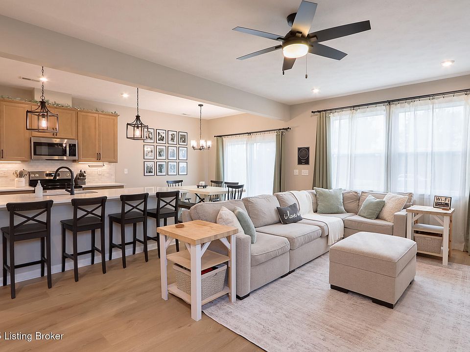 Better Than New in Harvest Point! Welcome to 117 Sunset Way, a stunning Hudson Western Craftsman plan in the desirable Harvest Point community. While this home is competing with brand-new construction in the neighborhood, it stands far above the rest thanks to its extensive high-end upgrades, designer finishes, and immaculate like-new condition. Why settle for builder-grade when you can own a home that already includes the expensive upgrades the others don't? Step inside and be greeted by a wide-open floor plan filled with warmth and style. The chef's kitchen shines with quartz countertops, Carrara marble backsplash, crown molding on cabinetry, under-cabinet lighting, soft-close hinges, a large pantry, and a counter-depth stainless steel refrigerator, all details that elevate the space far beyond standard finishes. The oversized family room with a shiplap fireplace creates the perfect spot for cozy evenings. Upstairs, the primary suite is a retreat with a spa-like en suite bathroom featuring a double vanity, walk-in shower, and large closet. Secondary bedrooms include custom accent trim walls, and the home offers a versatile loft and a convenient upstairs laundry room with white cabinetry and shelving. Every detail has been thoughtfully upgraded: luxury vinyl plank flooring throughout the first floor, premium matte black hardware, three-panel Craftsman-style doors, high-end light fixtures, and top-of-the-line ceiling fans in every bedroom. Even the half bath boasts a designer vanity with vessel sink and waterfall faucet. The exterior is just as impressive. This home sits on a premium corner lot backing to a retention pond, offering privacy and peaceful views. The upgraded trim package, landscaping, and additional guest parking just 100 feet away add convenience and curb appeal. Custom touches continue with garage shelving, foyer wainscoting with hooks, and smart home features including a Ring doorbell and security cameras. Located in Mt. Washington, one of Kentucky's fastest-growing and most desirable communities, this home combines small-town charm with easy access to Louisville. Families will also appreciate being part of the highly regarded Bullitt County school system. This is not just another house in Harvest Point, it's a flawless, move-in ready home with upgrades already in place, saving you time, money, and hassle. Truly, better than new!