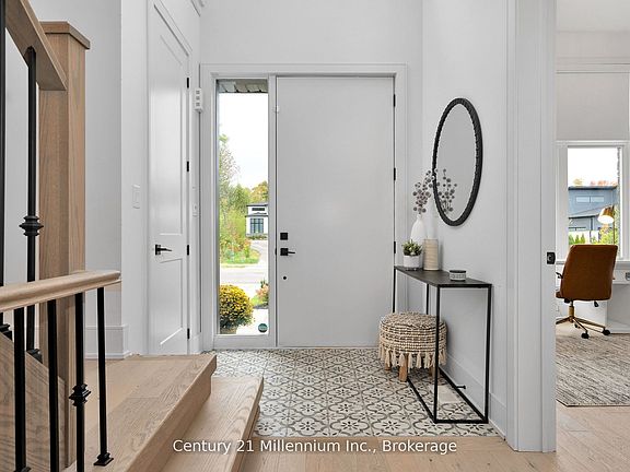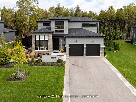 Drenched in natural light and designed with timeless elegance, this open-concept home spanning 3,426 sqft of total living space, is a rare blend of luxury and lifestyle. Overlooking a shimmering saltwater pool and backing onto protected woodland & the serene Georgian Trail. This property offers a private beautifully landscaped yard complete with a four-season perennial garden, premium stone walkways, gazebo, tranquil sitting area, & a cascading waterfall, creating your own outdoor sanctuary. Inside, the gourmet kitchen is a chef's dream featuring a 6-burner gas stove, pot filler, undercounter microwave, built-in fridge and freezer, whisper-quiet dishwasher, floating shelves and an eye-catching quartz island with gold accents that add just the right touch of glamour. The walk-in pantry is ideal for entertaining, with ample storage for everything from dried goods to oversized serving platters. The open-concept living room is anchored by a cozy gas fireplace and framed by oversized windows that offer stunning views of the pool and backyard oasis, creating the perfect setting for both relaxed nights in and lively gatherings. Exquisite craftsmanship is evident throughout, from the soaring 9-foot doors and substantial baseboards to the upgraded hardwood flooring on both the main and upper levels. The showstopping floating staircase makes a striking first impression in the grand entryway. The freshly finished lower level offers incredible flexibility with a spacious entertainment area, wet bar, full bathroom, two additional bedrooms, and a dedicated space for a second laundry or potential sauna, perfect for hosting guests, family, or live-in support. Located just minutes from Thornbury, world-class golfing at Georgian Bay Golf Club, the shores of Georgian Bay, and Ontario's top ski clubs including Georgian Peaks, Craigleith, Alpine, Osler, & Blue Mountain. Whether you're seeking four-season adventure or refined relaxation, this home places you at the heart of it all!