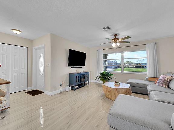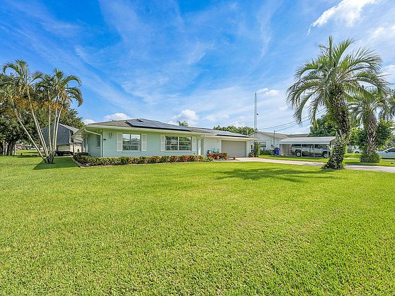 Don't miss your chance at a slice of Paradise.This gorgeous home is located on a peaceful fresh water canal w/ lake access to Grassy Lake. Enjoy fishing from you private dock which features a 12,000 pound boat lift. This home has been fully remodeled inside & impeccably maintained. Step inside to a light & bright living space, w/ tile flooring throughout. This 2/2 block home showcases its remodeled kitchen featuring granite countertops & stainless steal appliances. The bathrooms feature beautiful tile work & quartz countertop vanities. The home offers a new salt-chlorinated pool w/ a screened in patio w/ a view of the canal/lake. There is an additional closed in lanai that has been converted into office space w/ A/C. The home is located on an oversized lot & offers covered RV parking!