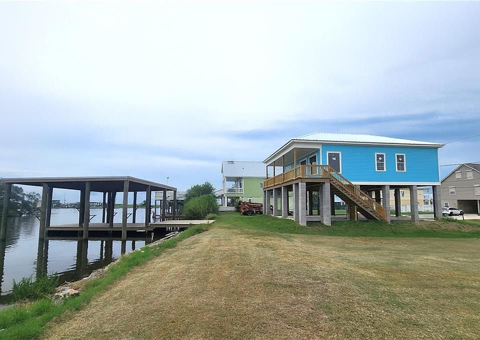 Welcome - a peaceful waterfront retreat located in Myrtle Grove Marina. This 1,440 square foot home sits at the end of a quiet cul-de-sac and offers direct bayou access, making it an ideal spot for boaters, fishermen, or anyone looking to enjoy life on the water. The covered carport and metal rof add durability and convenience, while the spacious balcony and porch offer stunning views of both sunrise and sunset over the canal to the marsh. You'll find two private boat slips with overhead cover right on the water, perfect for keeping your boats protected and ready to go. Whether you're watching the light change over the bayou or heading out for an early morning on the water, this property combines comfort and functionality in one of the best fishing areas in South Plaquemines. *Current price reflects property completed; seller is willing to sell at any construction phrase!* Call us today!