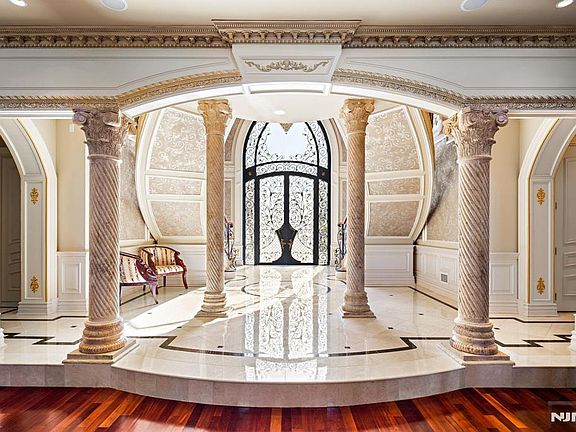 Set on one of the most sought after streets in northeastern Bergen County, this 12,000 square foot mansion abounds in luxury. Designed by premier architect, Zampolin & Associates, no detail has been overlooked. With east/west exposure, the home is flooded with beautiful sunrise and sunset light. Upper and lower floors open to terraces that extend the full length of the home, perfect for sunset soirees. A dramatic double staircase showcases the marble entrance with soaring 22 foot ceilings. The expansive kitchen will inspire your inner chef, while the formal living room's built-in bar is ideal for cocktails. Relax by the fireplace, or retreat to the sumptuous primary suite with its own fireplace, balcony, and sitting room. Seven additional bedroom suites, including one on the main floor offer ample accommodations. On the lower level, enjoy a movie in the theater or a game of squash on the indoor court. Additional features include an elevator to all three floors, hand-carved marble, heated floors, a serene natural pond, gazebo, summer kitchen, French doors throughout, and so much more. This home is truly an entertainer's dream and a must see. Call Annitsa @ 201-406-3650 for more information.