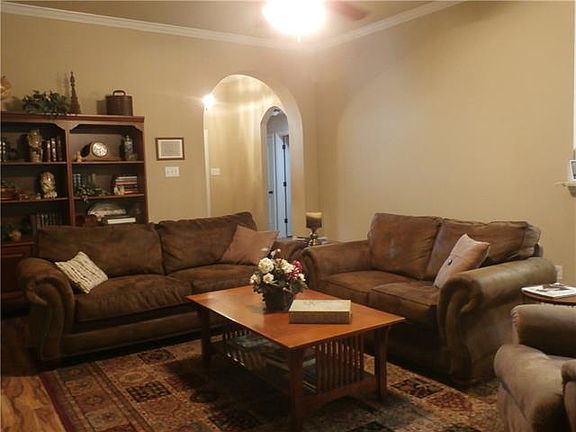 Enjoy tranquil evenings on the deck of this beautiful custom home! Property backs to a creek with a lovely natural wooded setting. Gorgeous granite countertops in kitchen & baths. Stainless steel appliances. Wood burning stone fireplace. Pretty wood laminate floors in living & master. Garden tub & tiled shower in master bath. Big custom walk in closet. Split bedrooms. Extra concrete space behind fence for boat parking. Storage building.
