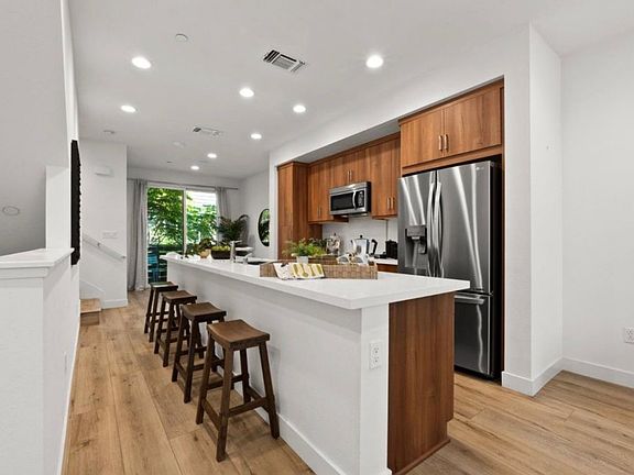 Discover modern living in this 2 bedroom, 2.5 bath tri-level unit within the Ice House Gated Community. Built in 2020, this all-electric home showcases thoughtful design finishes, including an expansive open concept kitchen, light-filled living room, and cozy dining area. The chefs kitchen includes Italian-made appliances, a large island with quartz countertops and custom backsplash. Retreat to your top floor primary suite with two walk-in closets, a large picture window and dual vanity bath. 2nd bedroom can serve as an office or guest suite. This smart home also boasts solar panels, Nest thermostat, A/C, and a GoogleFi set up perfect for work from home. In-unit laundry, private balcony, and a secured attached 2-car garage complete this home. Unbeatable location with Oakland's vibrant downtown, Lake Merritt, First Fridays all minutes away. Easy access to BART/freeways make this a commuter's dream. Don't miss the best deal in this community!