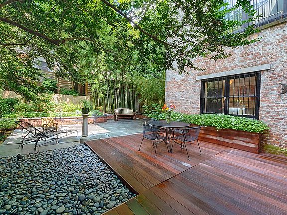 The owner's unit is a standout feature, seamlessly combining the garden units of both buildings with convenient party wall doorway access and an expansive double-wide private garden oasis, complete with lush plants and tranquil bamboo blowing in the wind.