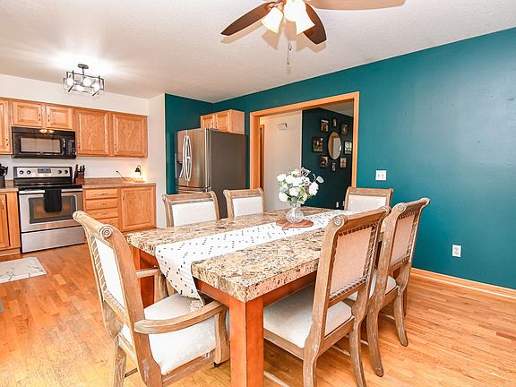 Excellent 4BR/2BA ranch with 1568 sf of main floor living comes on the market! This well-maintained home features open living with huge dine-in kitchen, spacious living area, 3 BR, including a large primary BR with generous ensuite bath, second full bath and laundry w washer and dryer. Downstairs the large lower level with epoxy floor coating offers significant additional living space and features a warm and inviting family room/entertainment area finished in rustic pine. This appealing area is highlighted by a striking recently-completed bar area. In addition, this level provides a 4th BR, with unfinished walk-in closet, resulting in over 2500 sf of finished living space. The lower level also offers a large yet to be finished area, which includes plumbing rough-ins for a 3rd BR, storage and options galore just waiting for the successful buyer's personal touches. Located in a great neighborhood and easy walking distance to schools, playgrounds and local businesses, this excellent home boasts many updates including interior paint, roof, siding, and garage door. Outside, the level 77'x132' property boasts a large private back yard with full wood privacy fence for family outdoor entertainment and play. All this and the HOME WARRANTY provided by the seller and this property is ready to go for the successful buyer. Relocating due to family needs, the seller is providing this opportunity for an excellent home in a great small community that is just a hop to the metro!