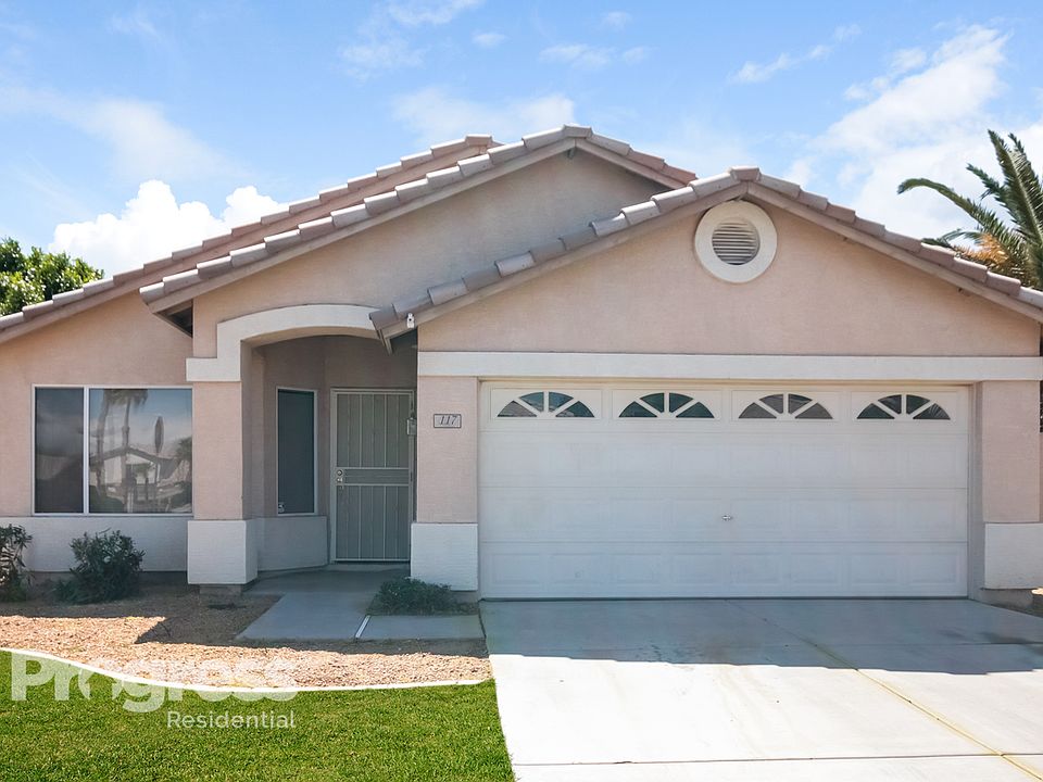 This stunning home features vaulted ceilings, an eat-in kitchen with and island, pantry and plenty of cabinet and countertop space. You'll appreciate the spacious rooms, especially the master suite, which boasts a walk-in closet and master bath with dual sinks and ceiling fans throughout. You'll love relaxing under the covered patio in the backyard! Schedule your tour today.