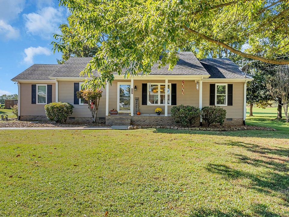 Charming 1 level home on large cul-de-sac lot with a country ambiance. New interior paint. Upgraded primary bath. Wood flooring in living, kitchen, & primary bedroom. New carpet in other bedrooms. New windows - 2024. Water heater - 4 years. Professionally cleaned. Hear/Air serviced every 6 months. Covered front porch. Deck with field views. Rear entry garage.