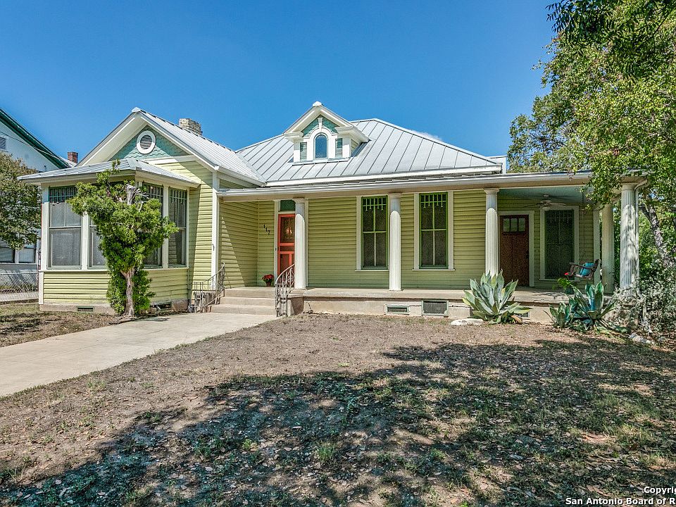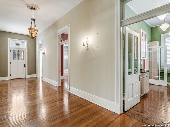 OPEN SATURDAY 1-3 AND SUNDAY 3-5PM. Urban living in Historic Monte Vista! This grand one-story, well into it's second century, is one of the oldest structures in the neighborhood. An expansive wrap-around front porch with swing lets you enjoy the vibrancy of this thriving historic and entertainment district. Mere blocks from all the popular dining spots that make Monte Vista a "destination!" The home is full of towering seven foot windows, interior glass doors and high transoms. The living room has a window-lined "bump out," offering cozy seating and a view of the tree-lined avenue. A unique double fireplace lends ambience to both the living and formal dining areas. The kitchen is large, bright and open, overlooking a beautiful private bricked courtyard out back. (Kitchen IS plumbed for gas cooking!) And if all of that is not enough, there is a charming three-room apartment above the detached two-car garage. Opening to a spacious deck and perched in the tree canopy, this "treehouse" features a living area, bedroom, bathroom, and bright, cheery kitchen lined with windows. Tremendous long or short-term rental opportunities. Two car garage plus extra off street parking in the oak-lined driveway. EASY BIKE RIDE TO THE PEARL!