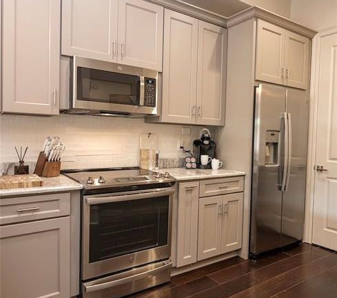 - Included: Dishwasher, Microwave, Oven, Range, Refrigerator