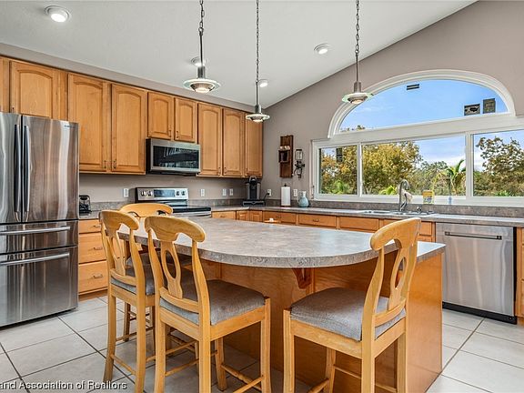 Welcome to your private retreat! This spacious home, on just under 5 acres, will be sure to check your boxes! Meticulously maintained, spacious, with a wonderful floor plan! The living room is inviting and has a gas (propane) fireplace. The Dining area and Kitchen are sure to please! Dining room can accommodate a larger table, and has a beautiful chandelier fixture, that compliments the three-pendant lighting in the Kitchen. There is also recessed lighting in kitchen/dining. Kitchen has Creative Cabinetry wood cabinets, and plenty of them! Large amount of counter space, and a prep island/breakfast bar. The beautiful appliances are just 5 years old. French Door refrigerator, smooth surface range with double/convection oven, microwave, dishwasher! Stunning arch window brings in plenty of light. Brand new windows just installed throughout home! Double hung/glazed, energy efficient. The large family room is where you will spend a lot of time! Two sets of brand new sliding doors lead out to the absolutely beautiful outdoor lounge area, onto the deck and pool area! The pool is 16' X 36", and is heated/saltwater. All of this area is completely enclosed. Pool, deck, enclosure, and equipment only 5 years old! New roof 2017! Back inside the house- Down the hall, you will pass three comfortable and good sized guest rooms with great closet space, and a guest bath before reaching your Main Bedroom Suite! Bedroom is large and easily accommodates a King size bed and more furnishings. A walk-in closet with space galore! The Main Bathroom features an oversized jetted tub, walk-in tiled/stone shower, dual sinks, linen closet. Completing the resort feel of your Suite, are sliding doors opening to the pool area! One of the guest bedrooms has a pocket door that leads into the guest bath. This bathroom is beautiful and has a walk-in tile/stone shower w/ dual shower heads and built in bench seat. There is a nice vanity with ample storage, and linen closet. The utility/laundry room is amazing! Whirlpool washer/dryer are five years old. There are plenty of cabinets, and a 7' counter surface that will make those drudgery chores a breeze! Laundry room also features a new stainless-steel sink/faucet. The Rheem water heater is just 1 year old! There are peaked to 12' ceilings throughout the home and beautiful architectural ledges adding dimension and space! Most doorways are 36", and doorway to Main BR is 40". There is a nice carport to one side of house, and convenient side entry through the utility room. On the other side of house, off the enclosed pool deck, is an open 22' X 16' concrete space, perfect for bbq's, plants, or more storage! On the property, is a pole barn, with lots of possibilities! The detached garage has electric and would make a cute guest house! Schedule your showing today!