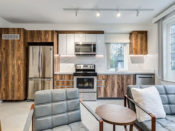 Oakwood,stained unit entry doors Touchpad smart unit entry locks Smart lighting Solid wood, noise-reducing doors throughout In-suite washers/dryers Stainless steel appliance package with OTR microwaves High-end kitchens: oak plywood cabinets, marble countertops and marble backsplashes, under counter LED lighting High-end bathrooms: oak plywood cabinets with marble backsplashes, Nuheat in-floor heating, wall tiling throughout Extensive oak plywood millwork in all units: wall-beds in all studios, custom tv cabinets Herringbone, walnut hardwood floors in all bedrooms Accent tiled walls in all bedrooms