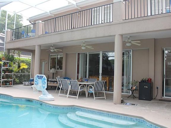 5 bedroom, 3 bath, 3 car garage home with a Bonus room. Professional upscale kitchen. This upscale kitchen has all the bells and whistles with double entry doors open into a beautiful pool deck. The kitchen features a lovely breakfast bar with built in wine cooler to enjoy while stepping out to your vivacious outdoor patio and pool area. If you want another view of the pool deck do not worry, you have a large second balcony on the upper floor to relax and enjoy this great space, all under a screen enclosure. Tile and wood floors, and carpet throughout. You will love the expansive floor plan with elevated ceilings, crown molding, fireplace, formal living, and dining room. Master bedroom is truly a retreat with a sitting area and fireplace. This home has been well cared for and it shows.