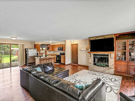 Desirable Ashwaubenon location within walking distance of Lambeau Field. This updated open concept ranch has a huge kitchen/living room area that features a brick gas log fireplace. 1st floor bathroom features dual sinks and dual showers! Newer flooring throughout Kitchen/dining, Living room and hallway. All kitchen Finished basement adds extra entertainment space with a spacious extra full bathroom and additional storage space. Massive fenced in background features a wood deck, shed and above ground pool. All appliances included.