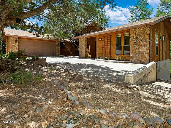 Open the front door and be warmly greeted by the statuesque rock fireplace and awed by the panoramic views of pine trees and tranquil mountains!! Located just 5-minutes from vibrant downtown Prescott in the quaint neighborhood of Haisley Homestead, this 3-bed, 3-bath mountain home is the perfect retreat! The living room features a high tongue-in-groove wood cathedral ceiling and tons of natural light and views. Primary bedroom has sliding doors to the deck and downstairs guest suite has it's own bath and a private entrance and patio. Laundry room has a utility sink and also a cozy office nook. The outside deck offers an oasis of privacy to take in the magnificent views and serene sunsets, and backs to acres of open natural landscape. There's also a storage room under the house!